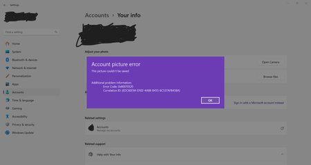Good day! After updating the Windows 11 Insider latest build, when changing the local account picture it appears an error message. After remove my two local user accounts. The error message sti...