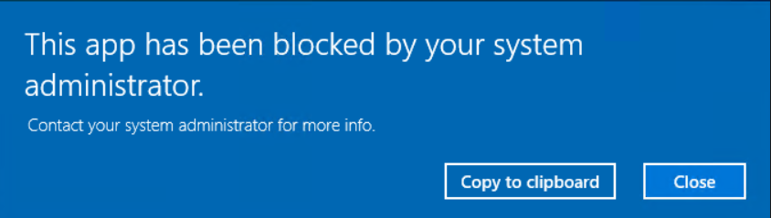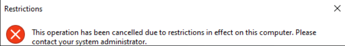 Our exam user accounts do also have the policy configured " Run only specified windows applications " which could be playing a part? But you would think this would present the different error dialog box