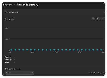 When I view the Power & battery page in the Settings app of Windows 11 all the battery usage metrics report 0% and no apps are reported using the battery. Does anyone know why this is? I've only had ...