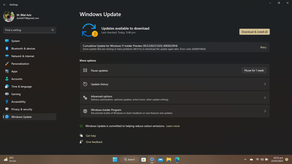 Cumulative Update for Windows 11 Insider Preview (10.0.22623.1325) (KB5022914) Refuses to Install