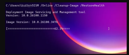 DISM /Online /Cleanup-Image /RestoreHealth No progress, I've been waiting for 45 minutes but it's stuck at 62.3%. What should I do, should I close CL or should I do something else? I need advice/hel...