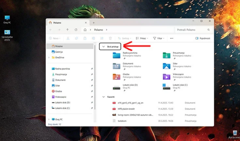 On my new Lenovo laptop, with Windows 11, everything is, thanks to you, as I would like and as it should be. There is one little thing that really bothers me, so please help. Namely, in File Explorer, when it opens, a black border appears around Quick access, which disappears when I click somewhere, and appears again when I open FE again (this is in Croatian). I have tried everything that Google and AI advise, but it does not help.