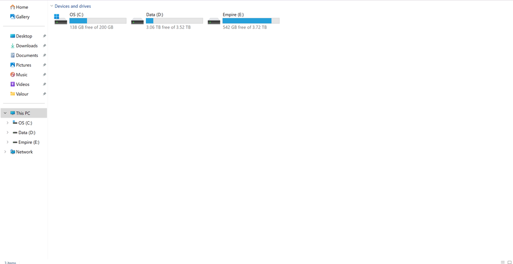 All this space in File Explorer's home directory. Is it not possible to show both "Devices and drives" AND "Quick Access" at the same time?