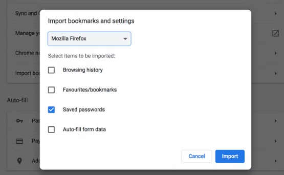 Import Firefox bookmarks and passwords into Chrome
