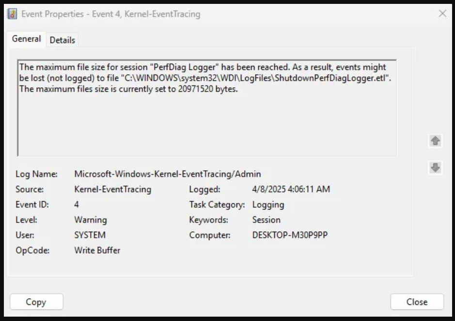 Increase Log Size For Event ID 4 Kernel-Event Tracing