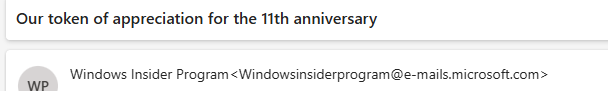I got a mail stating "Our token of appreciation for the 11th anniversary".