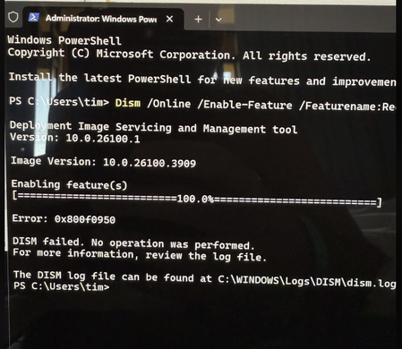 Issues for enabling Recall on Windows 11 26100.3909