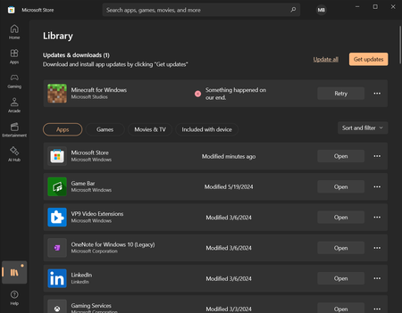 Microsoft Store 'Something happened on our end' when trying to download apps