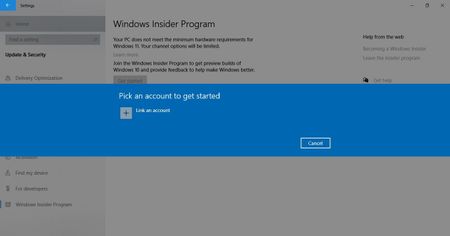 Not able join windows insider program