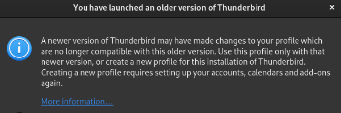 I seem to recall reading a while back that old Thunderbird profiles may not be compatible with newer versions of Thunderbird, or vice versa. IOW I may not be able to use my old Tbird profiles from my Windows 10 sdd with a newer version of Tbird that will get installed onto a new sdd with a fresh copy of Windows 11. Or is that wrong information?