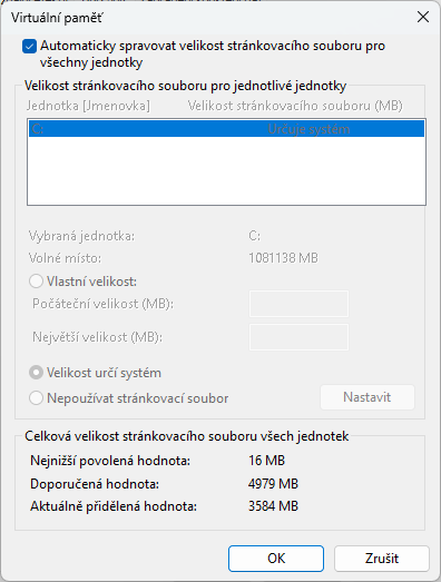 ✔️ Pagefile dropped from the previous auto‑assigned 64 GB down to just 3.5 GB