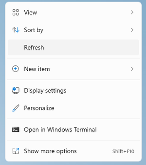 Refresh option in the new context menu