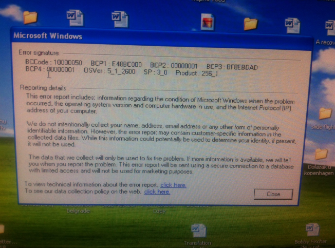Serious error your computer has been recovered from