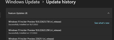 Stuck in WIP Beta Channel version 22623.730 (Windows 11)