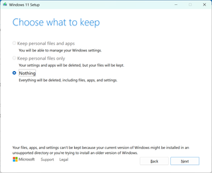 I am unable to select Keep files and apps