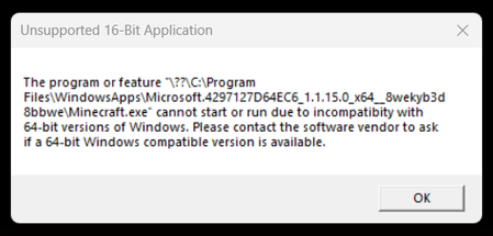 Unsupported 16 bit application error on all Microsoft Store games, including Game Pass games