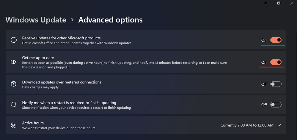 Press Win + I to launch settings, go to Windows Update, select Advanced Options, enable the below options if they are disabled.