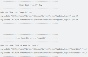 The code in both images does exactly what it says it does, the one on top clears information about last used key in Regedit and clears all saved favourites in Regedit. This has only to do with how you use Regedit and won't affect anything else. The second bottom one removes the Windows Product Key from the Registry.
