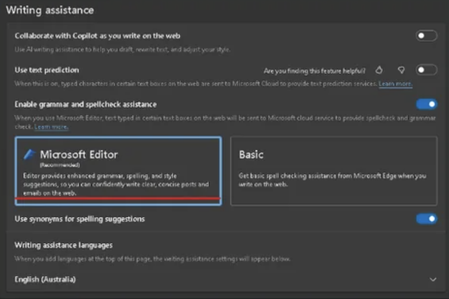In Word or Edge, see if the Microsoft Editor add-in has networking enabled, no in Settings→Privacy→Clear Writing Data, I got it this way!