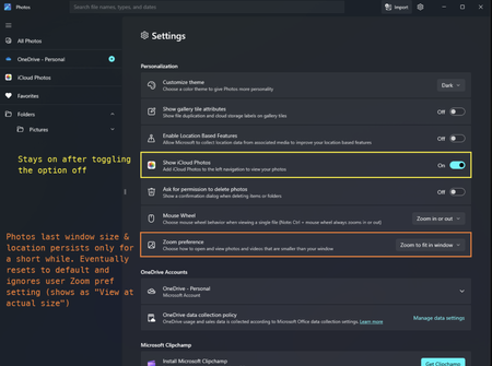 Why the Photos App has these two options for iCloud photos and Zoom?