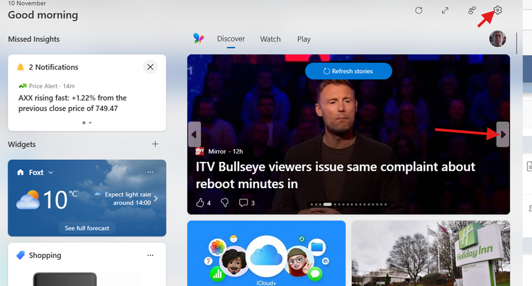 The Widget screen disappears immediately I click on Settings or on the forward or back arrows on the slide show as per the picture.