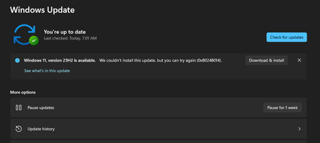 Windows 11 23H2 Install Issue with Insider Preview (0x80248014)