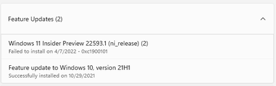 2 previous updates were also failing with the same error. I was hoping 22593.1 will install but I got the same 0xc1900101 error: