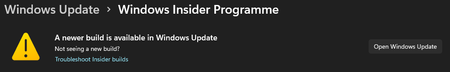 The Windows Insider Programma gives a warning that the is a newer build Windows Update can't find the update How can I solve this issue?