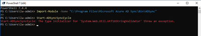 i have an issue with powershell 7 somehow when i start manually the Azure AD sync i recieve following message: