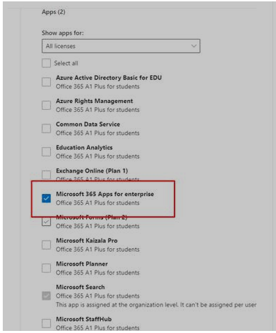6) Select your license eg: O365 education plan and select the sub-license whichever users need to update as dynamic propagation