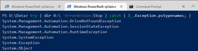 try { Connect-IMC -Name $RackServerIMCIP -Credential $IMCServerCredential -NotDefault -ErrorAction:Stop } catch { $_.Exception.pstypenames; }Where the top-most type name is the most specific to the exception, becoming less so as you read downwards.