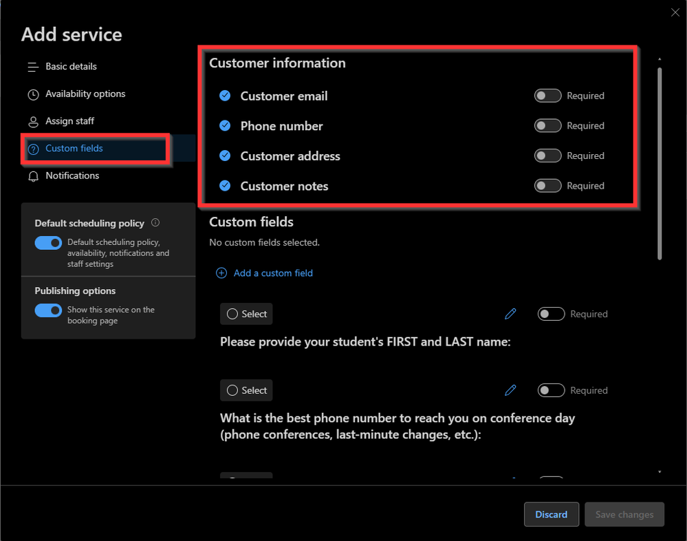 I'm wondering if there's a way to mark the Customer information questions as enabled/disabled and conversely, required, or not, using PowerShell? I would figure it would be somewhere in the params of New-MgBookingBusinessService, but cannot find anything with traction in their lovely documentation. Thank you for any assistance you can offer!