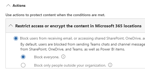 I created a DLP policy within Microsoft Purview centered around Microsoft teams to block external users outside of my organization from sending/receiving sensitive data over teams, but the condition was set to block everyone per my PowerShell script. Any suggestions would be helpful. I want the condition/action to block those individuals outside of my organization not everyone. Which script would be appropriate to block only people outside of my organization. I tried several forums, but I still can't get the script to switch from everyone to block only people ouside of my organization.