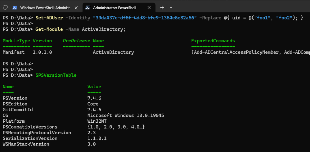 Powershell 7 getting error updating multi-valued attribute using Set-ADUser. PS 5.1 works
