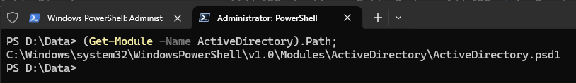 (Get-Module -Name ActiveDirectory).Path;Another option is to load the Active Directory module first, using the UseWindowsPowerShell parameter as shown below, but strictly-speaking, this shouldn't be necessary - as demonstrated above.