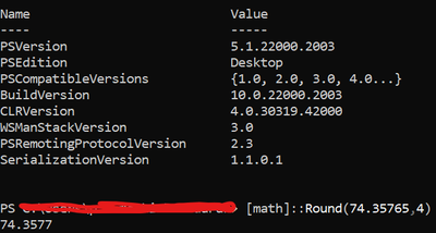 Thank you for your reply. But, above explanation getting failed for this value "74.35765". In PowerShell it is rounding to "74.3577".