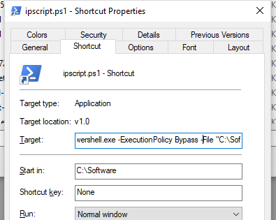 Running Powershell script as a shortcut