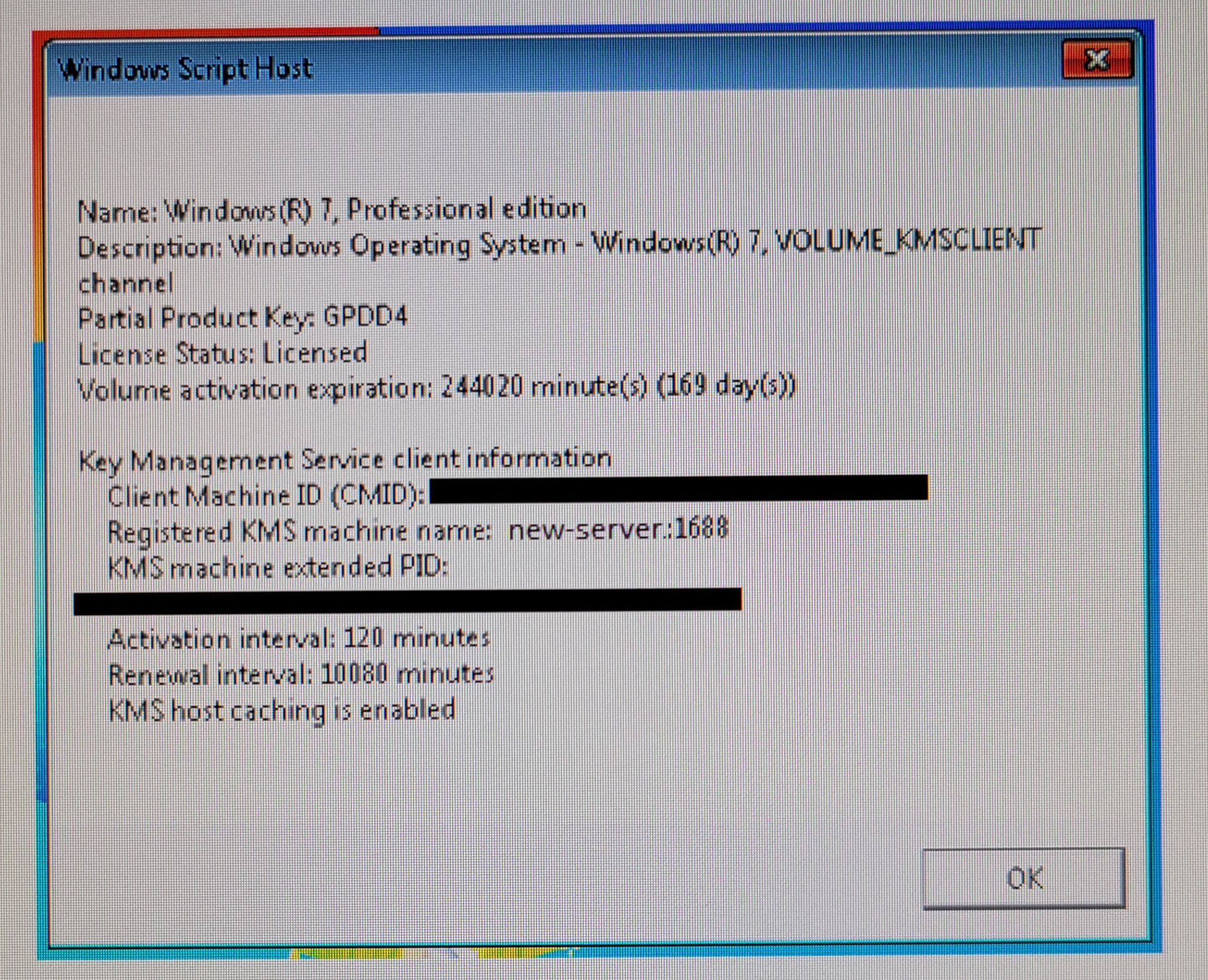 On 2019, when I attempt to activate/volume activate Win 7 I get, "The Software Licensing Service reported that the product could not be activated. No Key Management Service (KMS) could be contacted. Please see the Application Event Log for additional details."