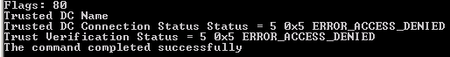 Have a windows server 2008 std server that is on the domain and can nslookukp all Domain controllers fwd/rvs lookups successfully but when i run: nltest /sc_verify:domainname.com, it returns trust ve...