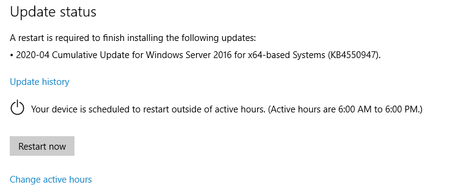 I have my servers set to restart after Windows Updates outside of Active Hours. It shows this also in the Settings. However, the servers never restart. Is there a reason for this or another setting I...