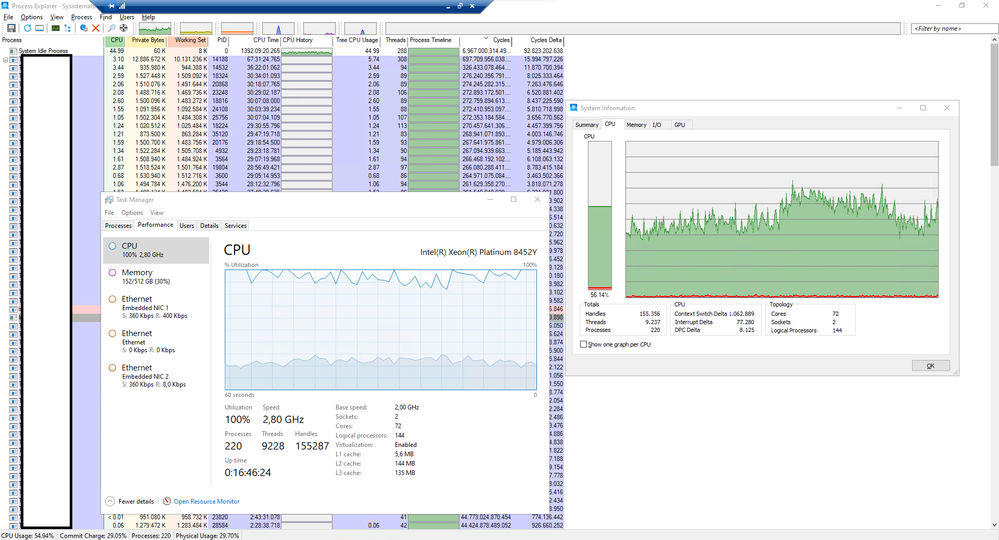 The Windows Task Manager signals a 100% CPU consumption with a 50% "System Idle Process" "consumption", what should I consider as real usage?