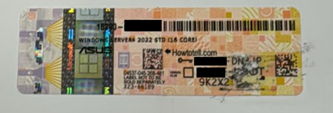 I am posting on behalf of my end-user, who has managed to damage part of the sticker while scratching it off, leaving him unable to activate his Windows Server 2022 STD installation (i have blacked out part of the SN above for privacy reasons)