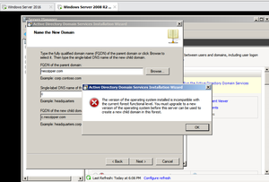Error: The version of the operating system installed is incompatible with the current forest