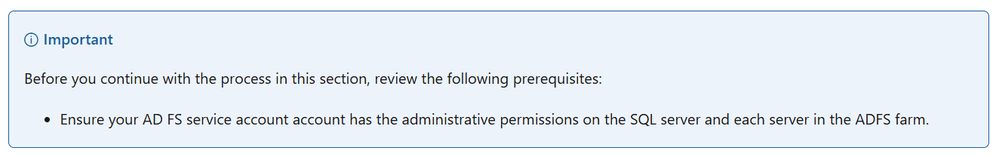 • Avoid Configuration Changes: At this stage, your ADFS farm is in a "split-brain" database state, where some servers are using WID and others are using SQL. Do not make any ADFS configuration changes until all servers are using the new SQL database connection for all farm if you decided to continue with this SQL approach.
