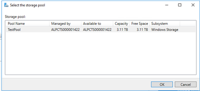 $storagePool = New-StoragePool -FriendlyName TestData -StorageSubsystemFriendlyName "Windows Storage*" -PhysicalDisks $(Get-PhysicalDisk -CanPool $true)