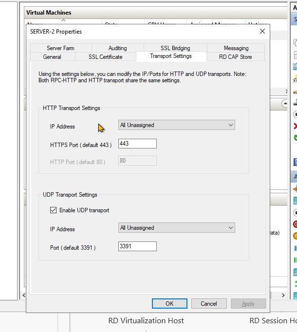 I've built a VDI with 3 Windows server 2019 on Hyper-V on Windows 10 pro latest version. testing it on my local network, when clients connect to the RDS server, gateway manager shows the connections are based on HTTP and UDP only, no word about HTTPS.