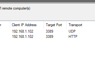 - Now the UDP is gone and only the HTTP connection on port 3389 is shown in gateway monitoring. still no HTTPS