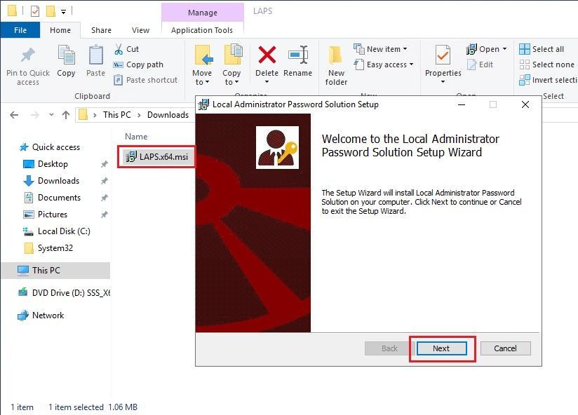 Now, before we update the group policies on the client systems, we install the AdmPwd GPO extension on the clients. These can be installed/updated/uninstalled on clients using a variety of methods including the Software Installation feature of Group Policy, SCCM, login script, manual install, etc.