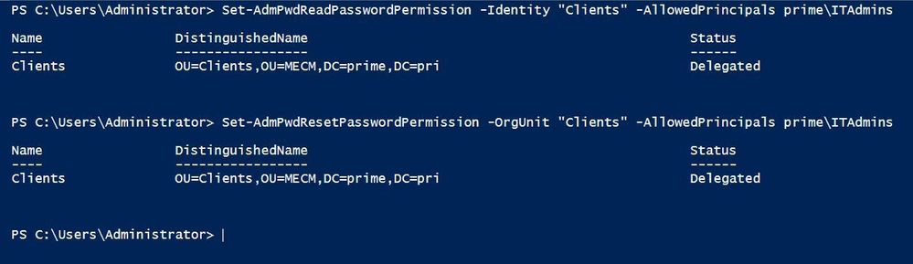 Set-AdmPwdReadPasswordPermission -Identity "Clients" -AllowedPrincipals prime\ITAdmins