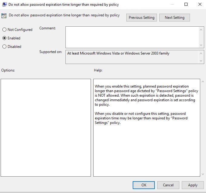 If you do not want to allow setting planning password expiration of admin account for longer time than maximum password age, you can do it in GPO.